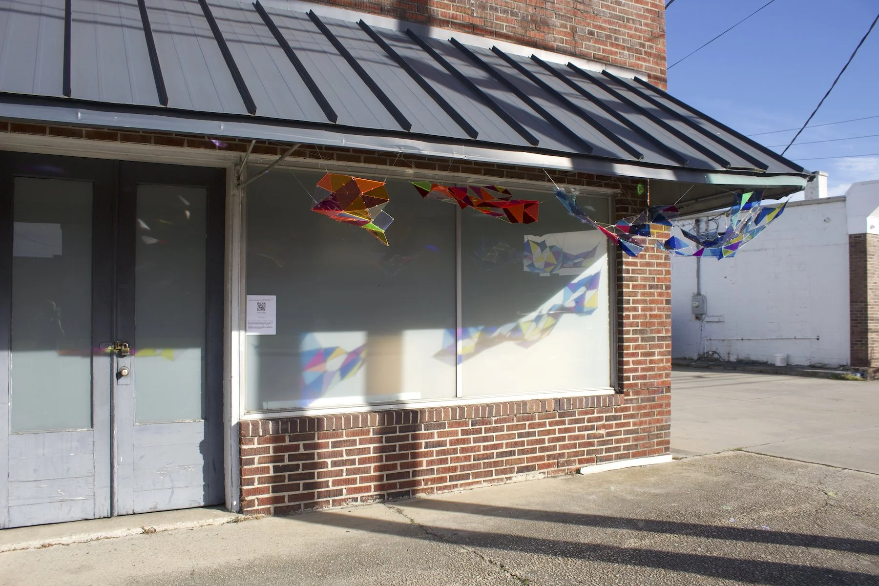 Plexi-glass, dichroic vinyl, jump rings, airplane wire, and light, Art Fields Competition and Festival, Lake City SC, 2025